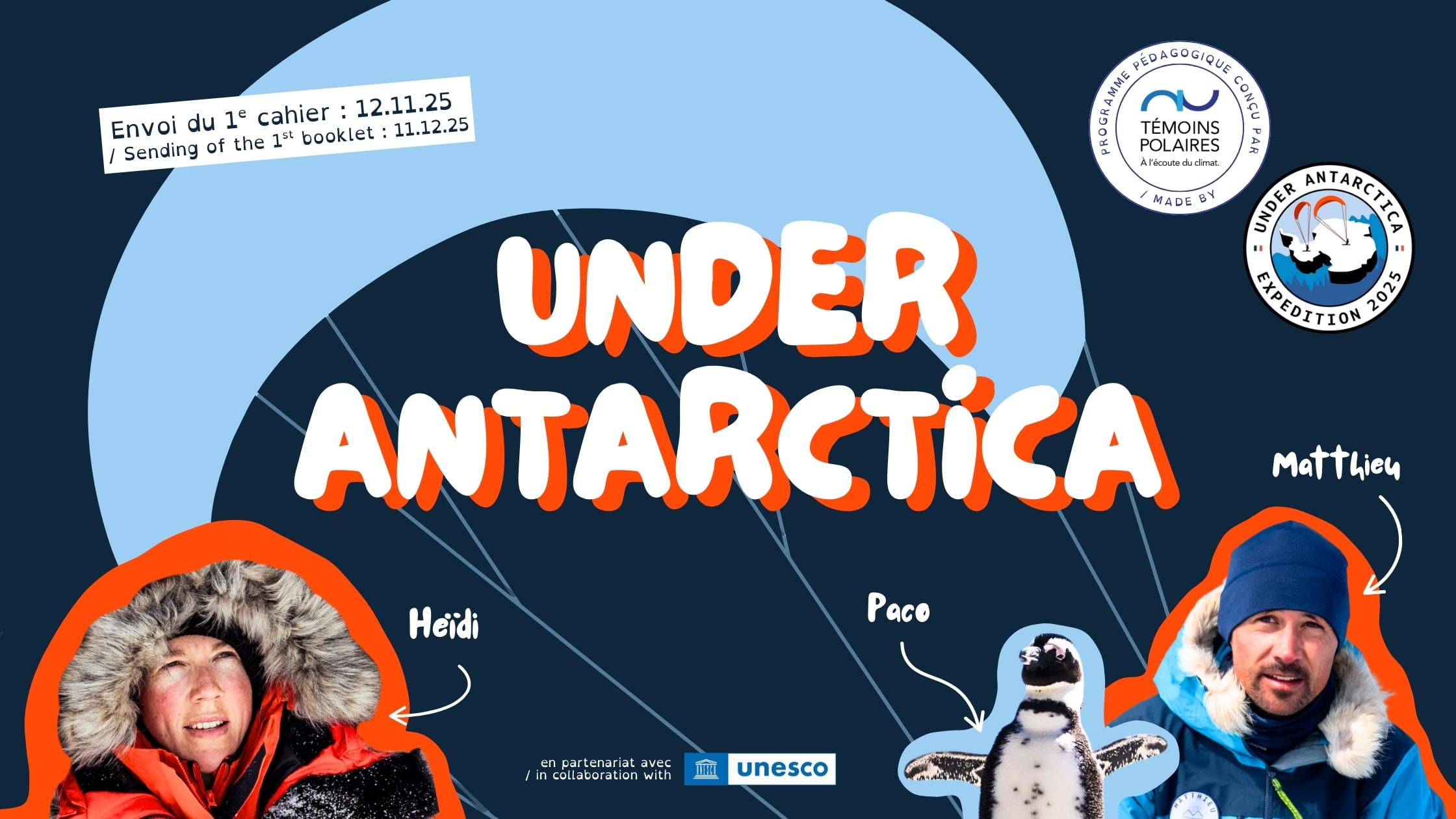 Suivez le duo grâce aux cahiers pédagogiques Under Antarctica par Témoins Polaires : l'enquête scientifique qui remonte le temps en Antarctique !